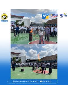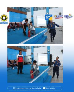Edukasi dan simulasi kebakaran atau bencana di SMKN 2 Palembang oleh tim Pemadam Kebakaran Kota Palembang Jumat 14 November 2025.
